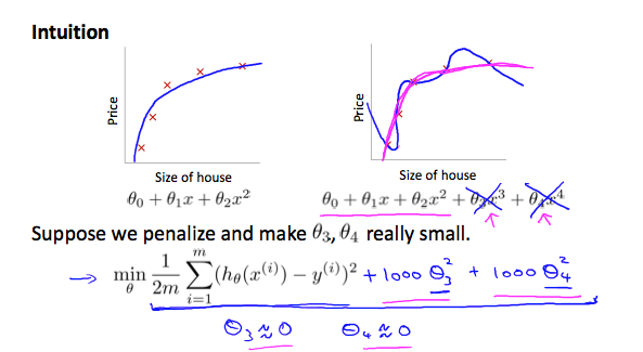 - Keep all the features, but reduce the magnitude of parameters $θ_j$.
