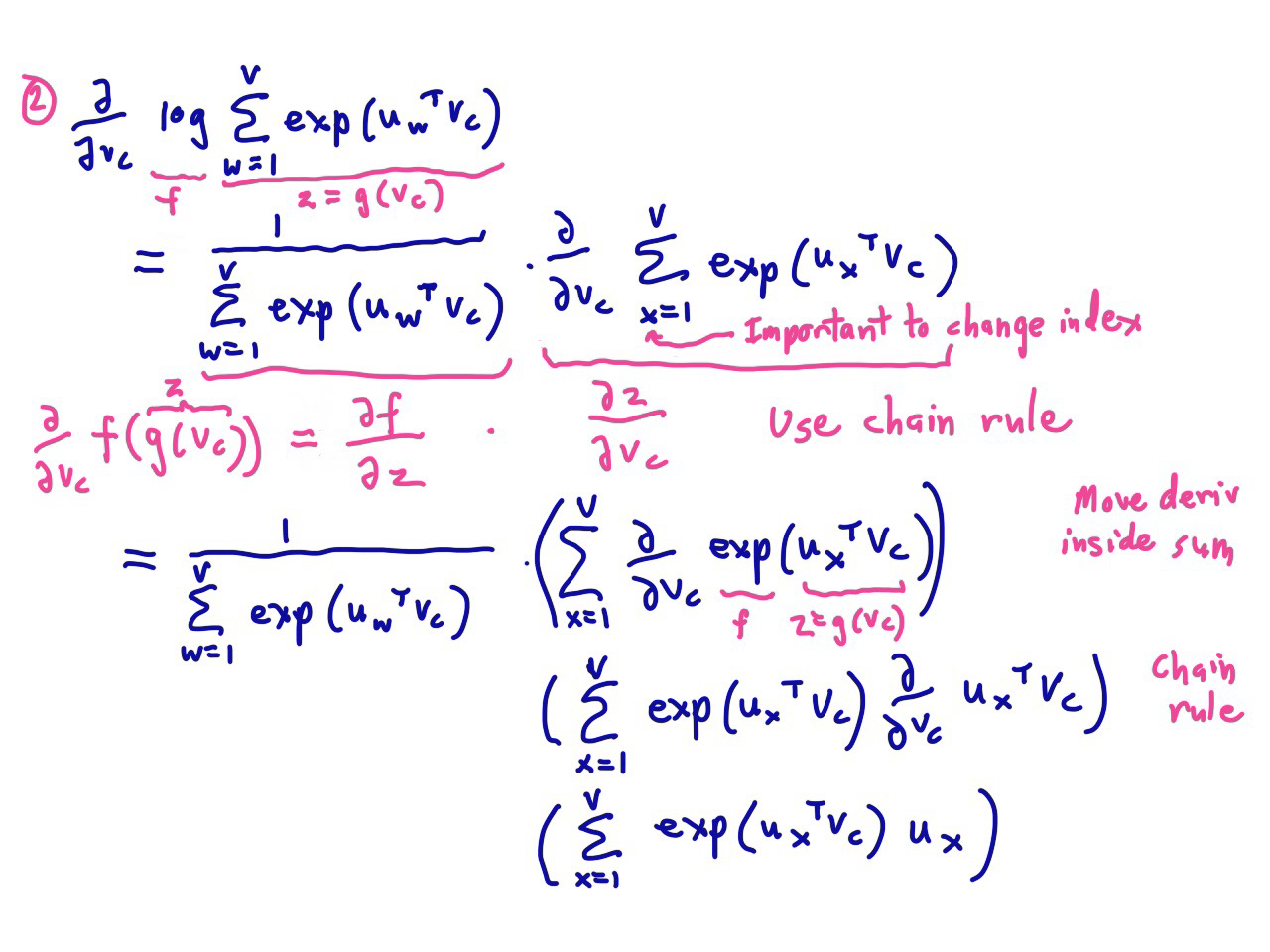 因此:$\frac{\partial J}{\partial{v_c} } =\frac{\partial J}{\partial \boldsymbol{z} } \frac{\partial z}{\partial v_c} = U(\hat{\boldsymbol{y} } -\boldsymbol{y})$