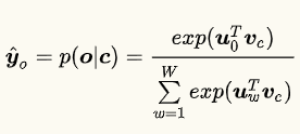 定义$z=U^T \cdot v_c$ ,$U$ 表示所有词向量组成的矩阵,而$v_c$ 也表示的是一个词向量。