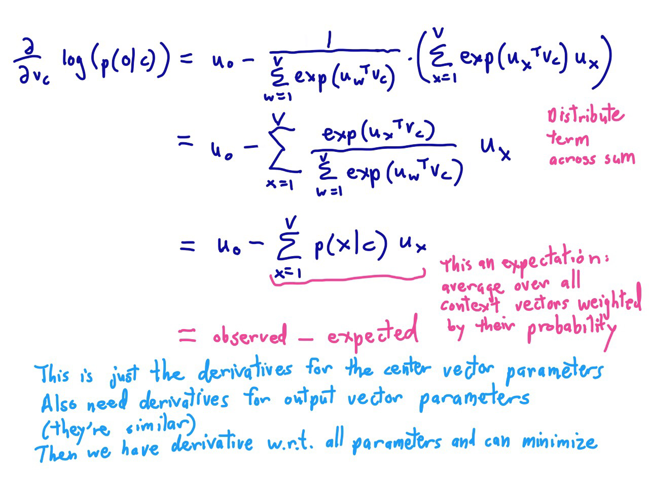 首先说明一下,$J_{neg-sample}$从哪里来的,参考note1 第11页,会有一个非常详细的解释。