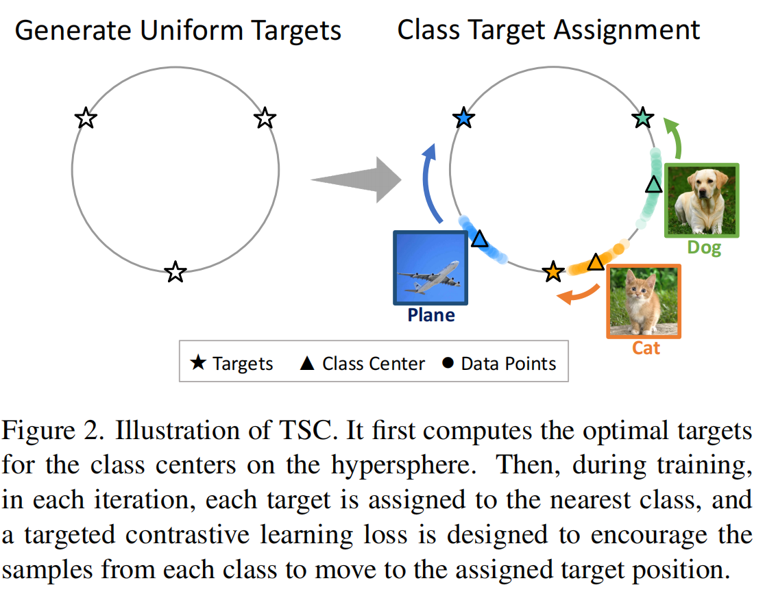 在训练过程中,实时将 Target 位置分配给类,并设计有针对性的监督对比损失,让每个类的样本移动到指定的 Target 位置。