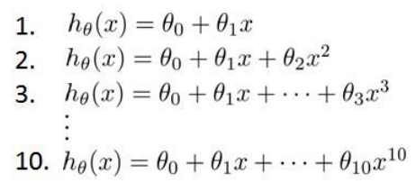 - Estimate the generalization error using the test set with $J_{test}(\Theta^{(d)})$, (d = theta from polynomial with lower error);