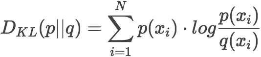 设 p 为观察得到的概率分布,q 为另一分布来近似 p , 则 p、q 的 K-L 散度 为: