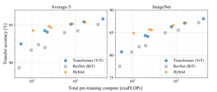 从速度上来看,同样预训练计算量的情况下,ViT 效果更好一些。
